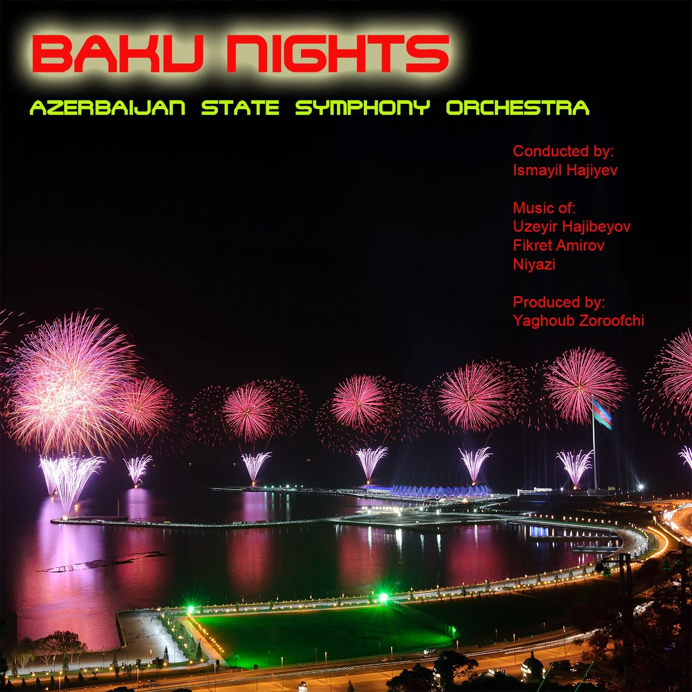 Baku Nights is the instrumental counterpart to Zoroofchi’s Arezoo album, featuring symphonic interpretations of romantic Azerbaijani classical works by composers such as Niyazi, Haji Babaov, Fikret Amirov, and Ali Salimi. Performed by the 120-piece Azerbaijan State Symphony Orchestra, the album blends Western orchestration with traditional Azerbaijani melodies and indigenous instruments.